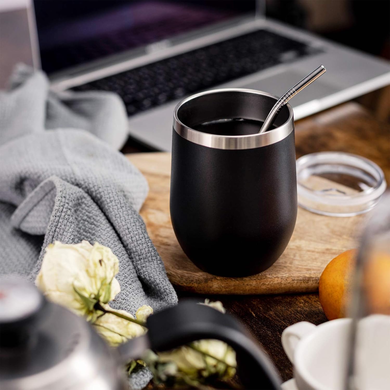 12 oz. Stainless double wall, vacuum insulated tumbler cup. This tumbler comes with a lid and stainless straw. Keeps liquids cold or hot for up to 18 hours.